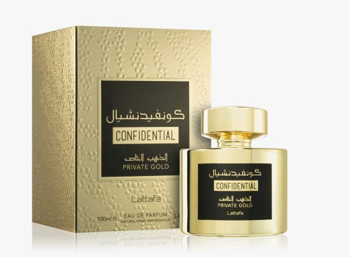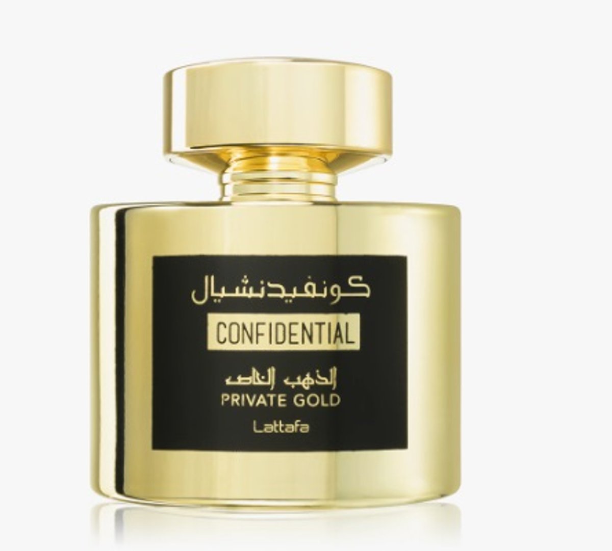O aroma de Lattafa Confidential Private Gold desperta com notas doces e frutadas de maracujá exótico, framboesas frescas, pêssego suculento e interessantes groselhas ácidas. De seguida, será brindado com uma explosão inebriante de flores doces de lírio-do-vale, permeadas pelo aroma suculento da pêra. Assim que estas notas desaparecem, um patchouli ligeiramente ensaboado e amadeirado assume o controlo, combinando sândalo doce com almíscar suave e sensual e baunilha quente.
