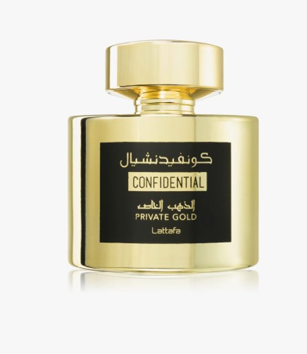 A Eau de Parfum Lattafa Confidential Private Gold irá envolvê-la numa nuvem perfumada que a manterá de bom humor durante todo o dia. É uma expressão de otimismo e um sentimento de felicidade completa e irá seduzi-la com a sua combinação frutada de pêssego suculento e framboesas doces.