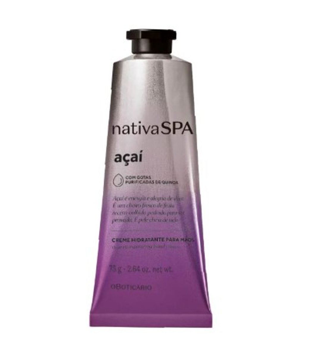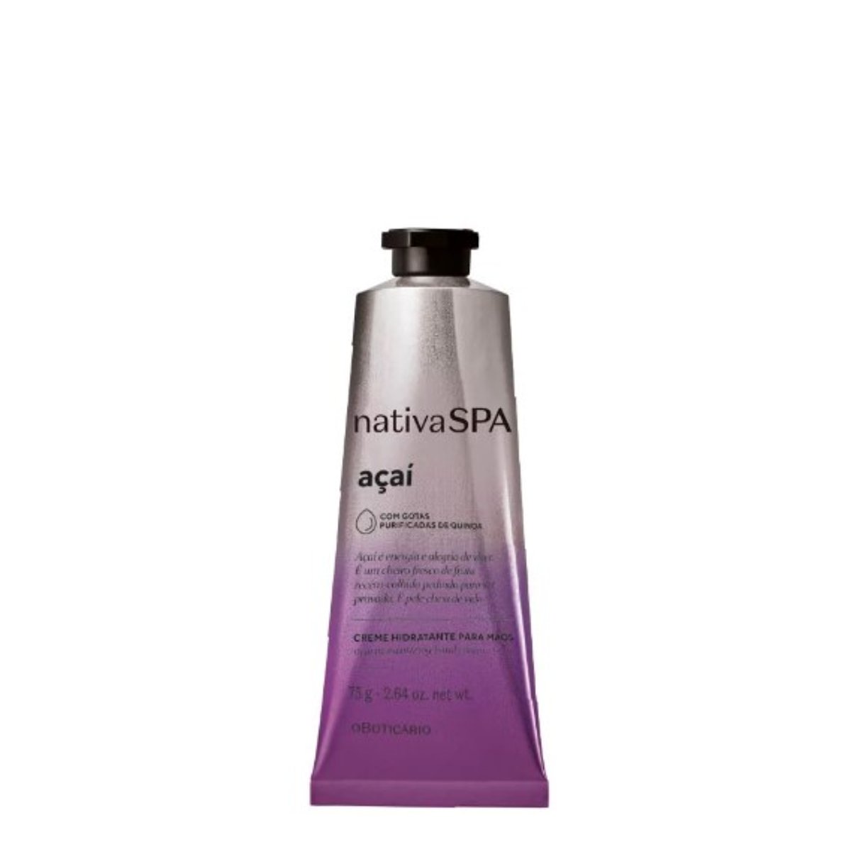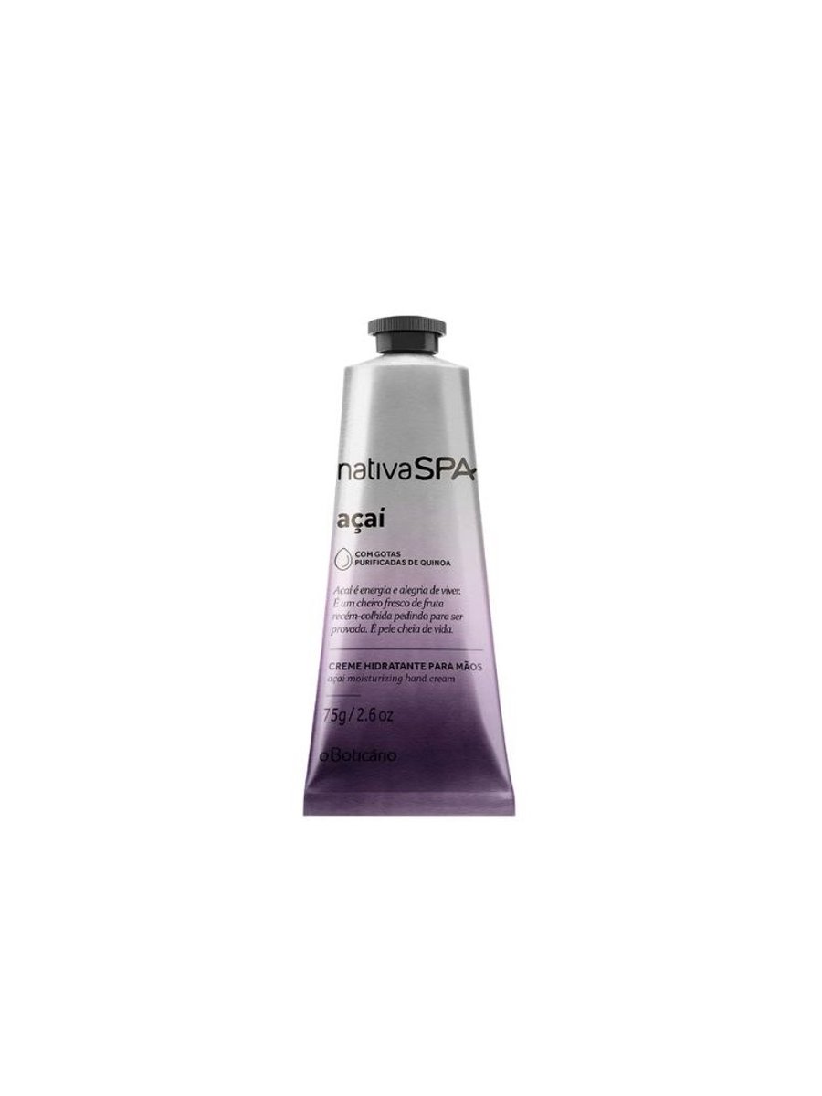 O Creme para Mãos Nativa SPA Açaí de 75g oferece hidratação intensa e duradoura, deixando suas mãos macias e revigoradas. Enriquecido com gotas purificadas de quinoa, o creme nutre profundamente a pele, enquanto a fragrância energizante de açaí proporciona uma sensação refrescante e revitalizante. Ideal para uso diário, ele protege suas mãos contra o ressecamento, mantendo-as suaves e delicadamente perfumadas ao longo do dia.
