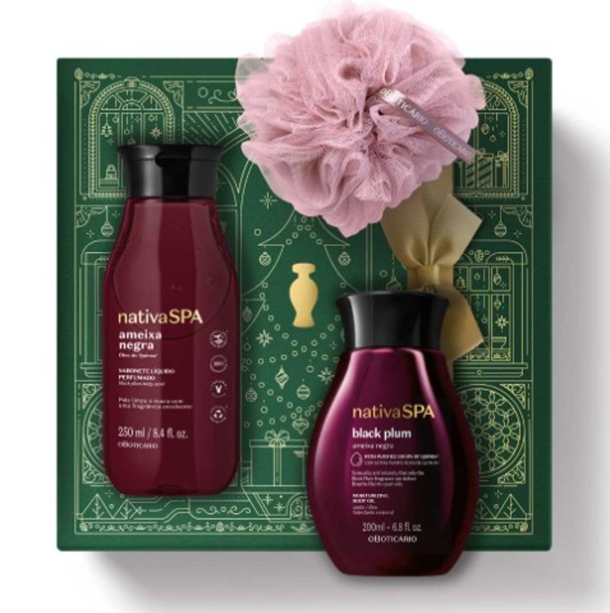 O Kit de Natal Cuidado Nativa SPA Óleo Ameixa Negra contém: