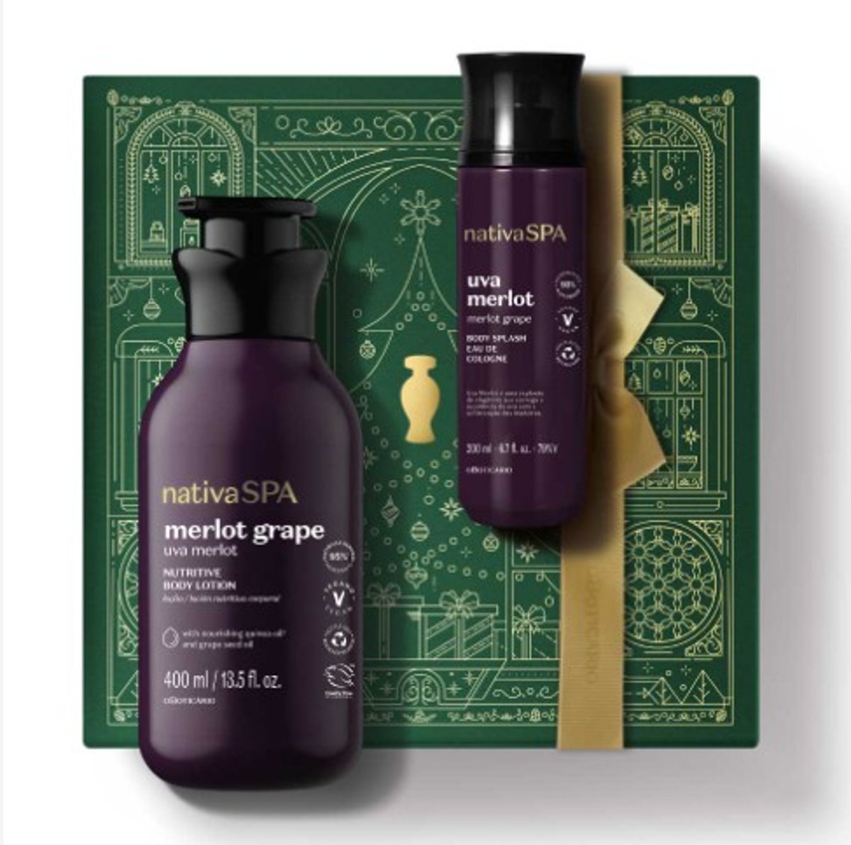 O Kit de Ñatal Pele Perfumada Nativa SPA Uva Merlot contém: