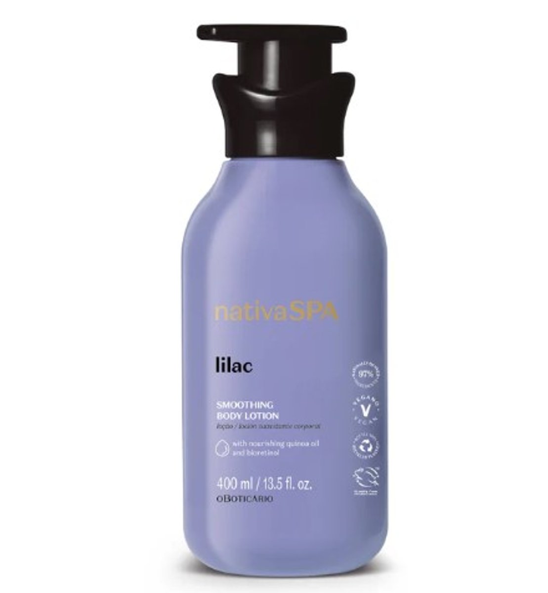 As flores são a demonstração máxima de beleza da natureza, em todas as suas formas, cores e texturas. A cada nova estação, renovam-se e encantam-nos com a sua beleza. Nativa Spa Lilac convida-te a sentir a pele macia e delicadamente perfumada, como o toque de uma flor. A sua fórmula contém Bioretinol, que auxilia na renovação da pele e Óleo de Quinoa*, que potencializa o colagénio natural da pele. Nativa SPA Lilac. Sente a máxima potência do cuidado.