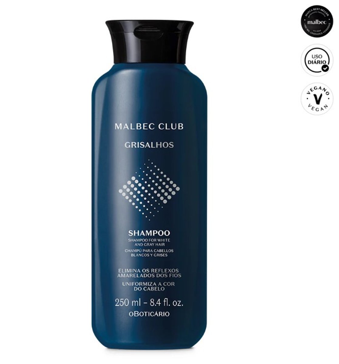 O Shampoo Malbec Club Grisalhos é feito para homens com cabelos grisalhos ou com alguns cabelos brancos.