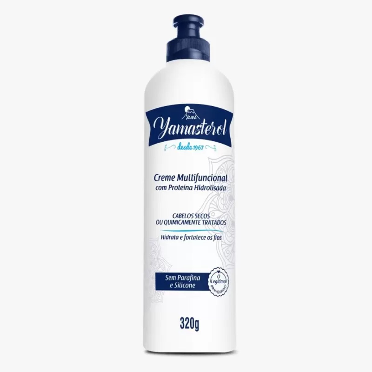 O Creme Multifuncional Yamasterol com Proteína Hidrolisada de 320g é ideal para cabelos secos ou quimicamente tratados. Sua fórmula fortalece os fios, proporcionando hidratação profunda e recuperação da saúde capilar. Livre de parafina e silicone, pode ser utilizado para co-wash, hidratação ou como creme de pentear, oferecendo proteção e revitalização dos cabelos. Indicado para quem busca um tratamento eficaz e completo para manter os fios macios, fortes e com brilho natural.