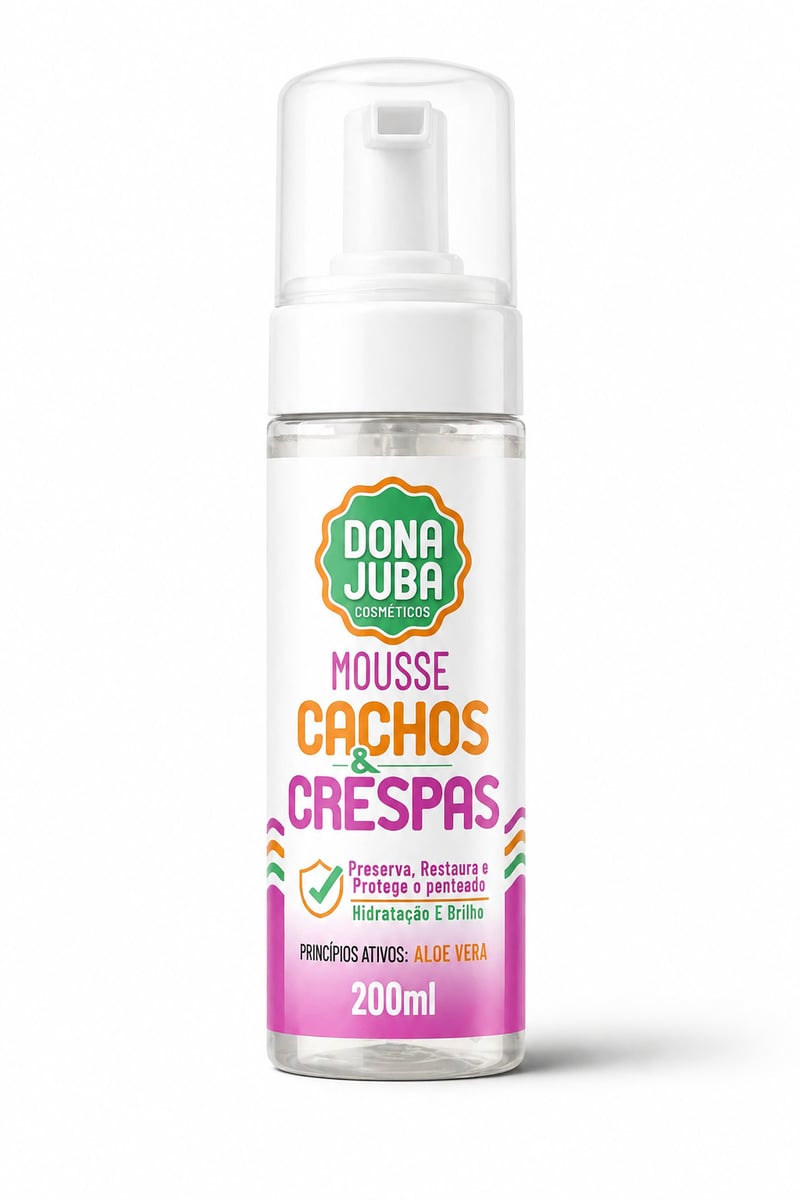 Transforme os seus caracóis com o Dona Juba Mousse Caracóis e Crespos 200ml e desfrute de fios nutridos, brilhantes e cheios de vida!